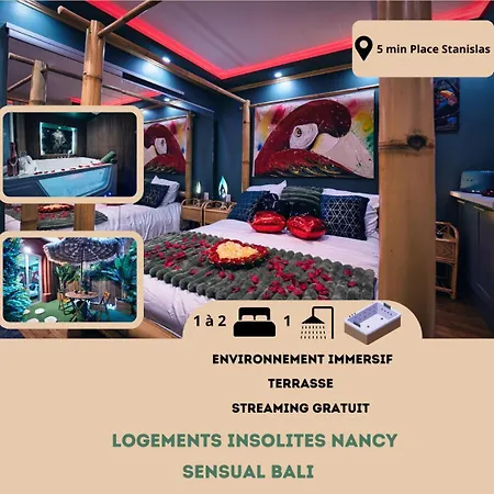 Stanislas Sensual Bali Love Room Jacuzzi Garage 300M Place Stanislas offers a terrace, as well as comforts like air conditioning. For added convenience, a spa bathtub are available at the accommodation.